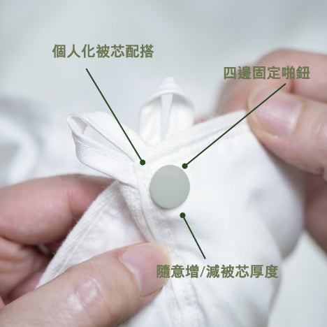 Our quilt includes handy poppers that fasten securely to the corners of our duvet covers for a cozy, slip-free fit.