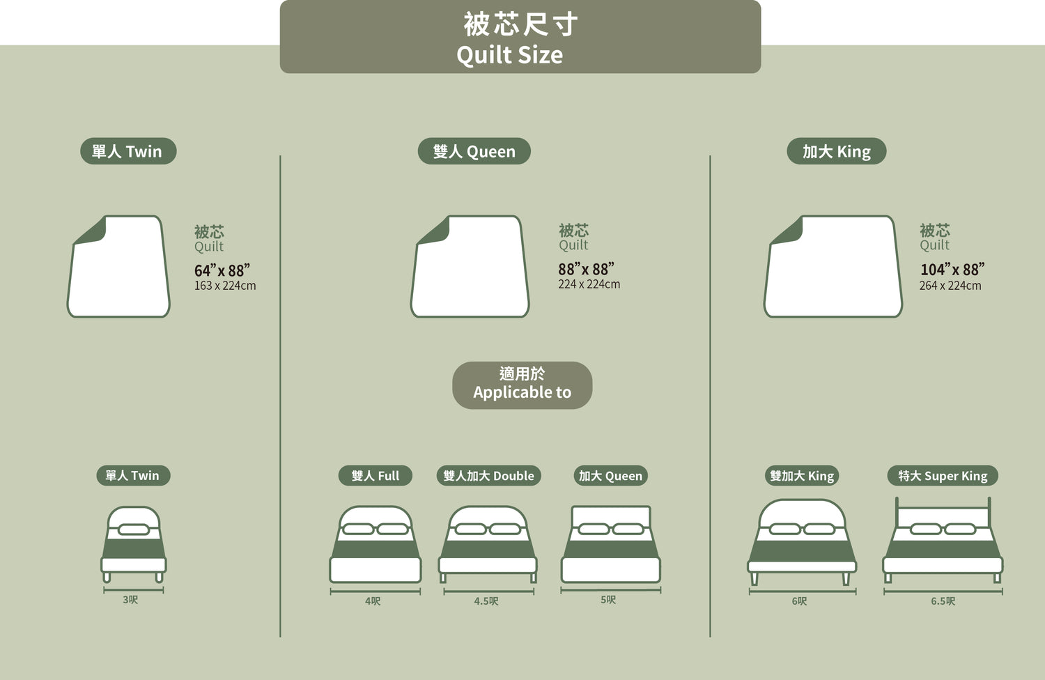 床笠: 78”x 80”丨被袋: 104”x 88”