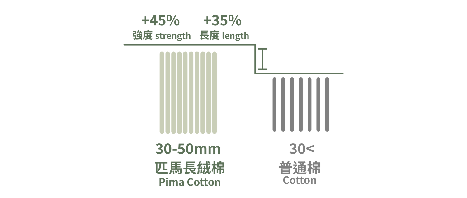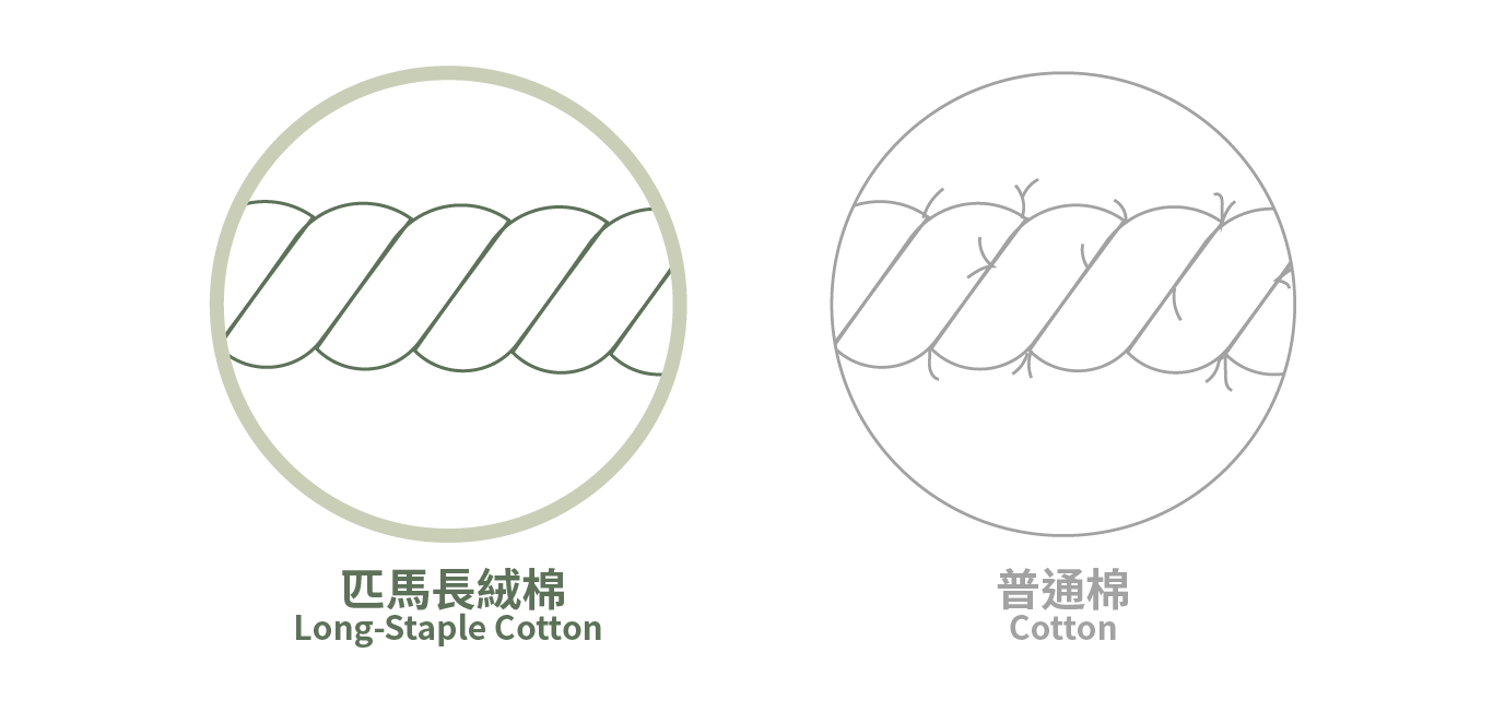 相比一般棉花,匹馬棉屬於超長絨棉纖維,編織而成的面料更見細緻順滑,更柔韌耐用,加上自然光澤感,呈現極緻奢華質感。