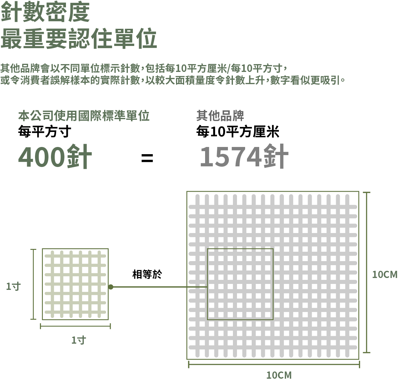 • 針數:1528針 / 10厘米 (國際工業標準 : 400針 / 每平方吋)